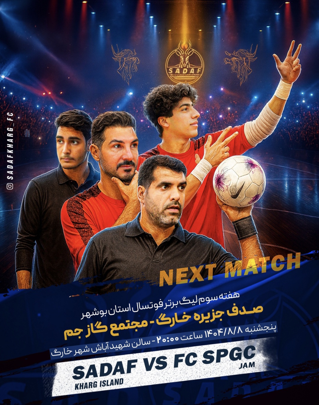 این دیدار ساعت ۲۰ پنجشنبه ۸ آبان ماه در سالن شهید آباش جزیره خارگ برگزار میگردد.